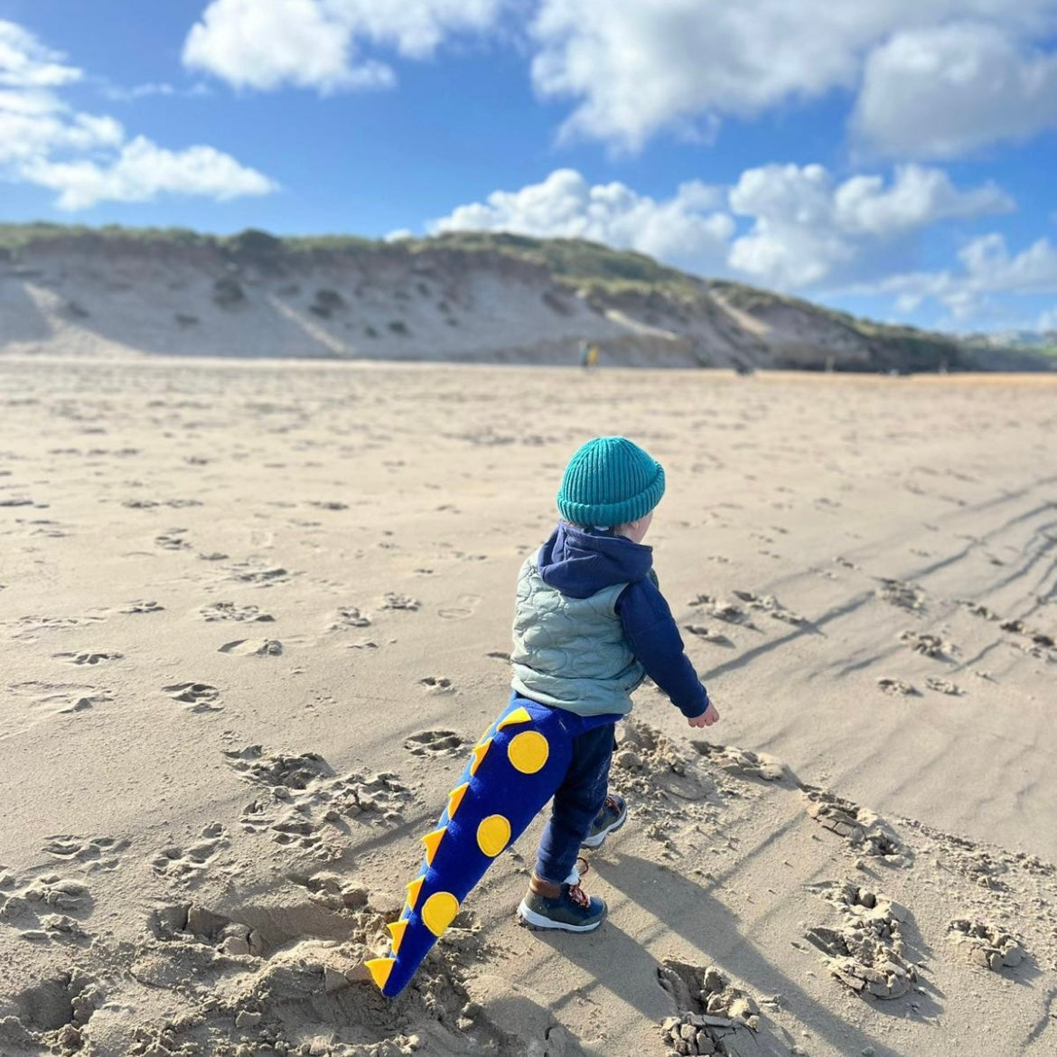 Created from soft blue fleece fabric with lovely yellow spots and spikes, this tail and is sure to bring hours of roaring fun.