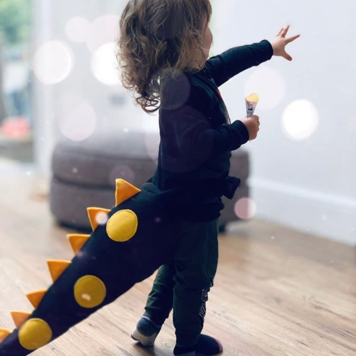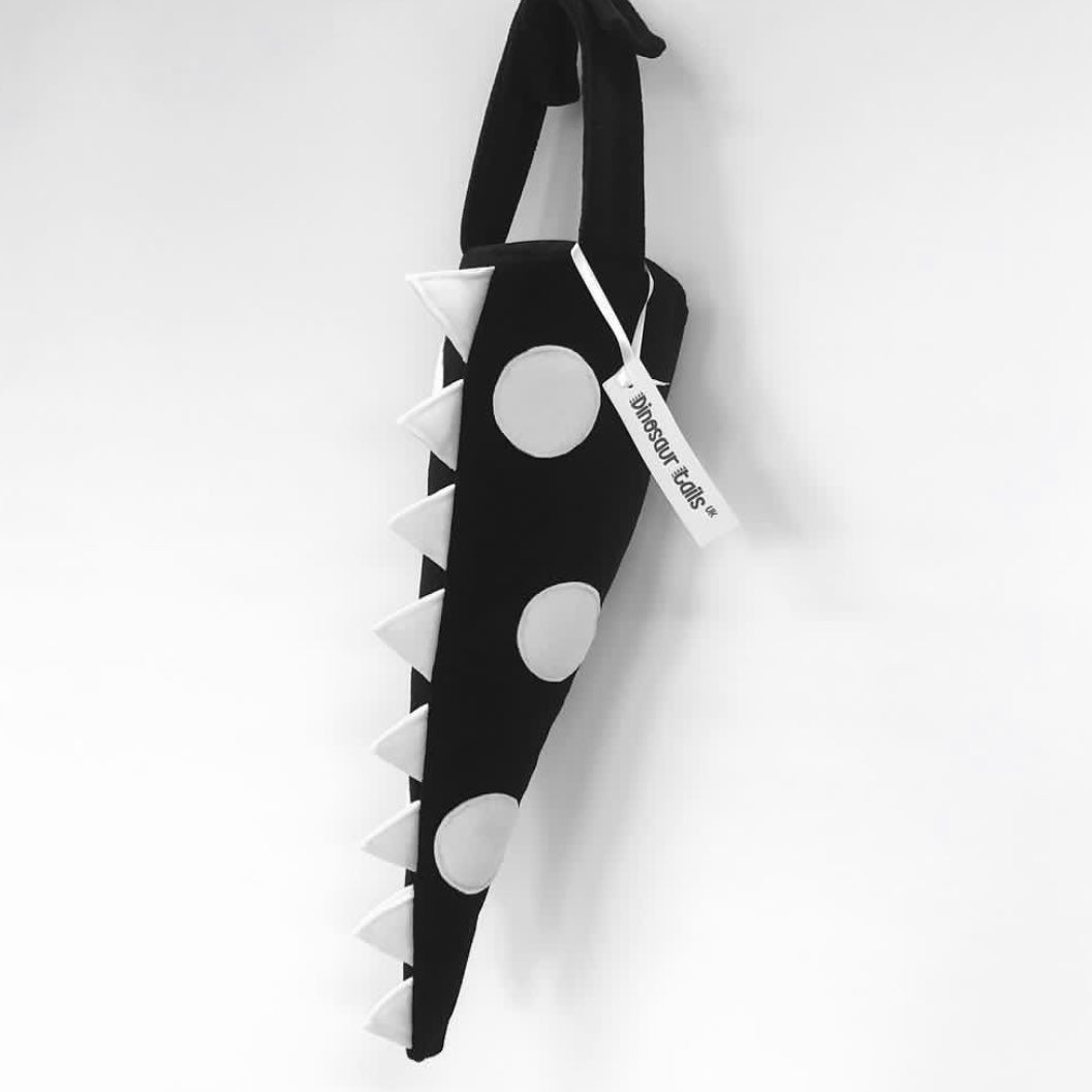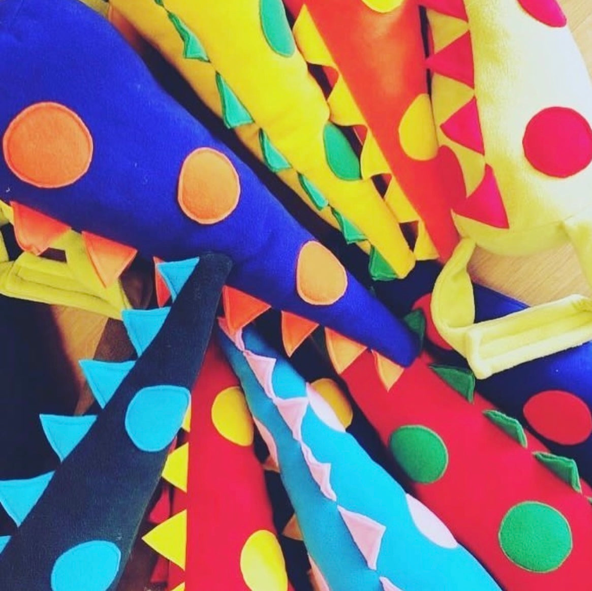 Choose two of your favourite colours and we will create your very own custom spotty dinosaur tail, dark green with orange contrasting spots and spikes, pink with lime green spots and spikes, the choice is yours!